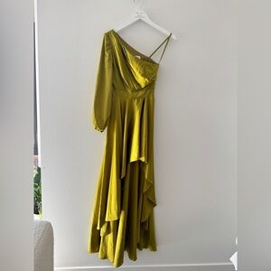 MAC DUGGAL Green High Low One Shoulder Flowy Gown in Chartreuse 2