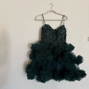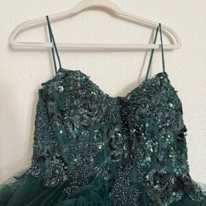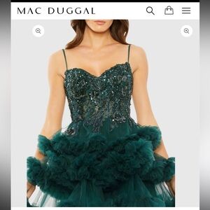 MAC DUGGAL Green Thin Strap Beaded Bodice Tiered Tulle Dress
