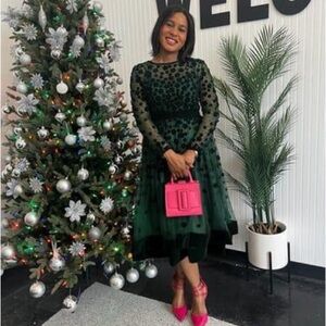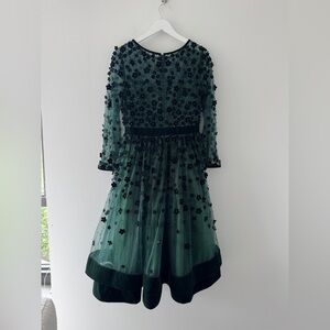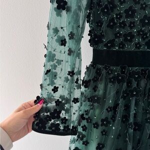 MAC DUGGAL Green Velvet Embellished Illusion Long Sleeve A Line Midi Dress 12