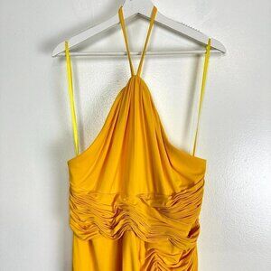 MAC DUGGAL Halter Neck Rouched Side Front Slit Gown in Marigold Size Large
