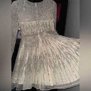 MAC DUGGAL High Neck Long Sleeve A Line Mini Dress - Size 8