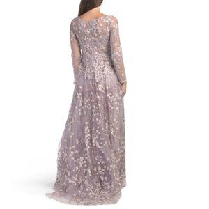 MAC DUGGAL Lilac Long Sleeve Floral Embellished Gown