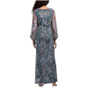floral print mesh overlay, sequin embellished, elastic cuffs, front slit, fully lined