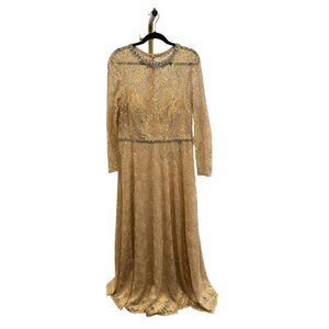 MAC DUGGAL Long Sleeve Floral Lace Gown Rose Cream Womens Size 14