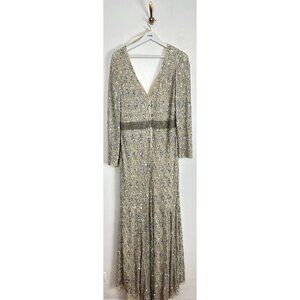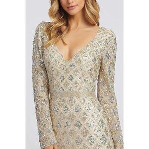 MAC DUGGAL Long Sleeve Sequin Gown in Nude Size US 12