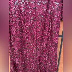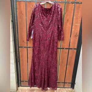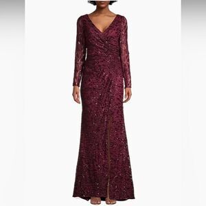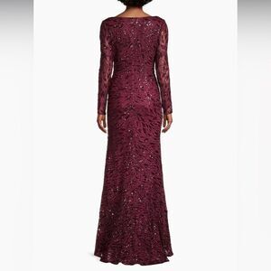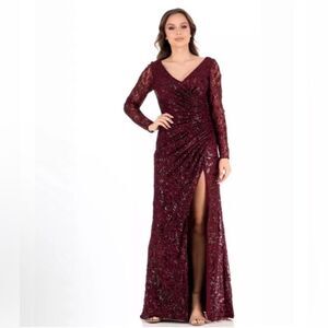 MAC DUGGAL Long Sleeve Sequined Lace Ruched Gown Garnet size 16 NWT