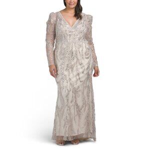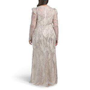 MAC DUGGAL Mocha Long Sleeve Embellished Gown