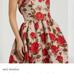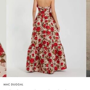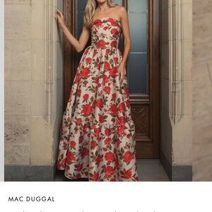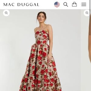 MAC DUGGAL Multicolor Brocade Strapless Floral Gown With Ruffle Hem