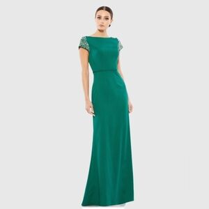 MAC DUGGAL NWOT 55718 Beaded Cap Sleeve Bateau Column Gown