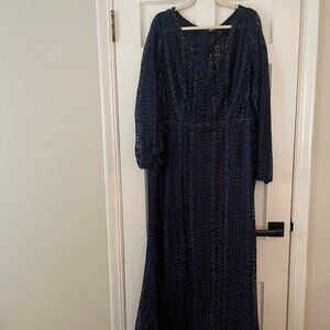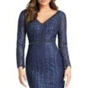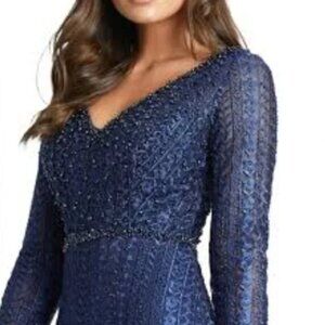MAC DUGGAL; NWT EMBROIDERED LONG SLEEVE V NECK TRUMPET GOWN NWOT Size 18