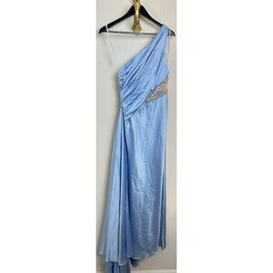 MAC DUGGAL One Shoulder Charmeuse Gown With Beaded Cutout in Powder Blue US 0
