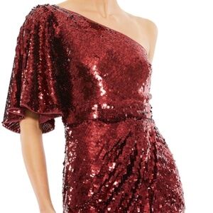 Wedding guest, prom, formal event, black tie, gala, mother of the bride, mother of the groom, bridesmaid, bachelorette, bridal, cocktail, party, flutter sleeve, sequins, long gown, cruise, gala, opera, pageant, flowy, romantic, feminine, one shoulder, thigh slit, sexy, gold, maroon wine deep red cranberry, one shoulder, greek goddess vibes, shimmer, sparkly, shine, luxury, sophisticate, classy, xmas, christmas, holidays, new years