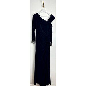 MAC DUGGAL One-Shoulder Long Sleeve Jersey Gown in Midnight Size US 14