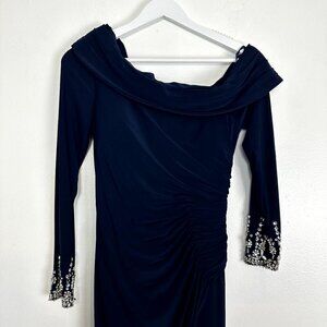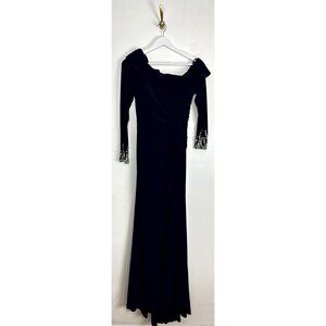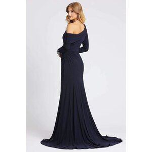 MAC DUGGAL One-Shoulder Long Sleeve Jersey Gown in Midnight Size US 2