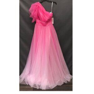 MAC DUGGAL Pink Ombre Ruffled One Shoulder Dress. Size 8. New w Tag