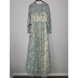 NWT MAC DUGGAL Platinum Sequined 3/4 Sleeve High Neck Ball Gown Size 8
