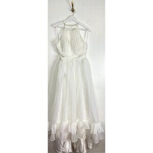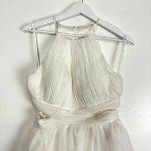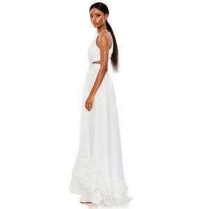 MAC DUGGAL Pleated Cutout Halter Neck Gown in White Size US 4