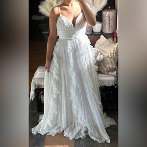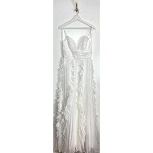 MAC DUGGAL Pleated Sleeveless Flowy Gown in White Size US 4