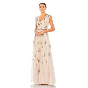 MAC DUGGAL Plus Size 24 Beige 93575 Embellished A-Line Evening Gown Dress $998