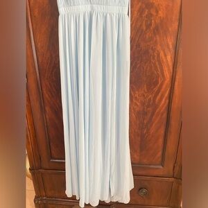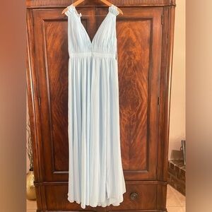 MAC DUGGAL Powder Blue PLEATED CHIFFON SLEEVELESS V-NECK GOWN