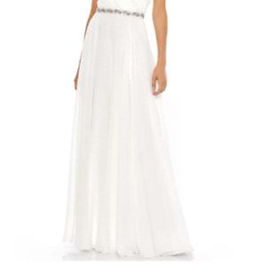 MAC DUGGAL ROSETTE APPLIQUE ONE SHOULDER CHIFFON WHITE GOWN sz 12