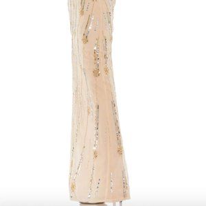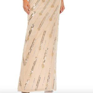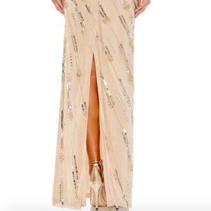 MAC DUGGAL ROSETTE SEQUIN CRYSTAL ONE SHOULDER NUDE GOLD GOWN sz 12