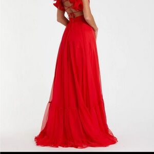 MAC DUGGAL Red Ruffle Tiered Cut-Out Chiffon Gown size 0