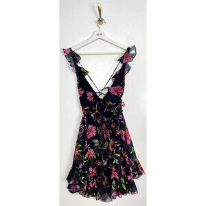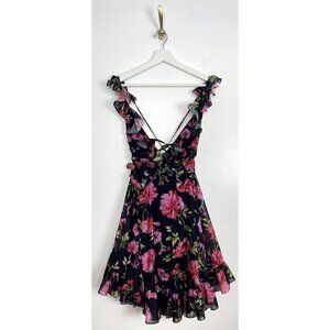 MAC DUGGAL Ruffle Cutout Lace-Up Mini Dress in Black Multi Size US 10