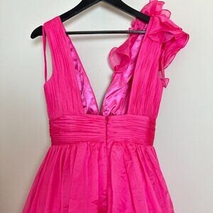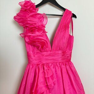 MAC DUGGAL Ruffle Shoulder V-Neck Chiffon Ballgown in Hot Pink Size US 6