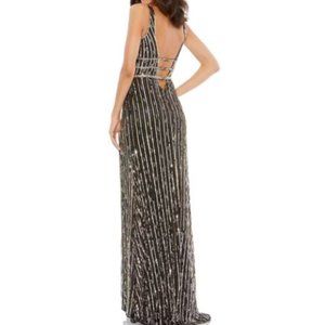 MAC DUGGAL SEQUIN DEEP V-NECK SLEEVELESS THIGH SLIT BLACK/GOLD GOWN sz 0
