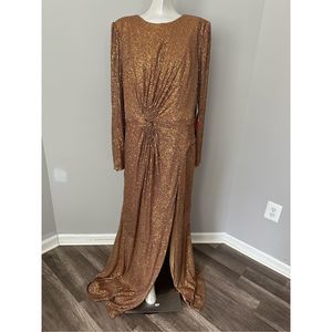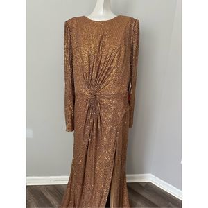 MAC DUGGAL SEQUINED FRONT KNOT LONG SLEEVE GOWN