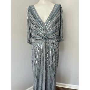 MAC DUGGAL SEQUINED V NECK CAPE SLEEVE COLUMN GOWN