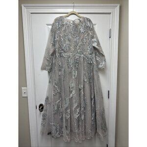 MAC DUGGAL SIZE 20 Gray EMBELLISHED WRAP 3/4 SLEEVE Cocktail Formal DRESS NWT