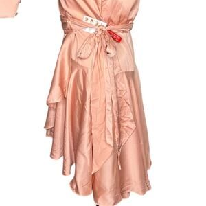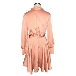 MAC DUGGAL Salmon A-Line Satin Long Sleeve Mini Dress Pink Wrap Small