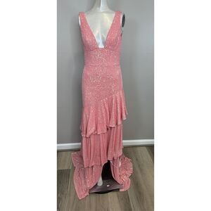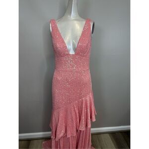 MAC DUGGAL Sequin Asymmetrical Ruffle Tiered Gown Size US2 $298