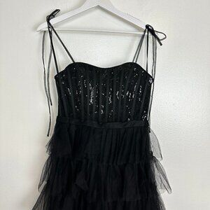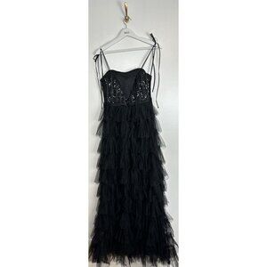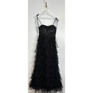 MAC DUGGAL Sequin Bustier Tier Tulle Gown in Black Size US 6