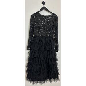 MAC DUGGAL Sequined Layered Tulle A-Line Cocktail Dress in Black Size US 6
