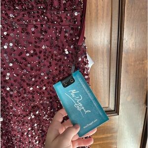 MAC DUGGAL Sequined V Neck Flutter Cap Sleeve Trumpet Gown