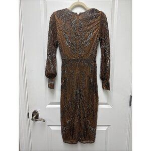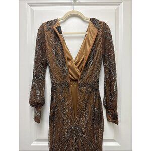 MAC DUGGAL Size 0 Brown 5295 BEADED LONG SLEEVE MIDI COCKTAIL Party DRESS New