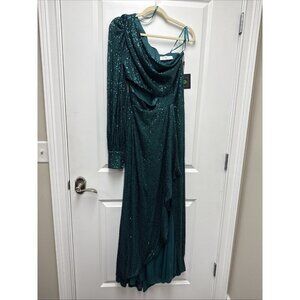 MAC DUGGAL Size 10 26730 Teal Green SEQUINED ONE SHOULDER CUT OUT GOWN Dress New