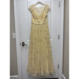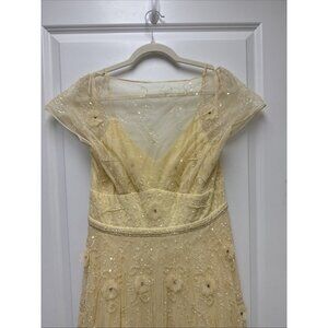 MAC DUGGAL Size 14 Yellow 70274 Embellished Illusion Cap Sleeve Formal Gown $598