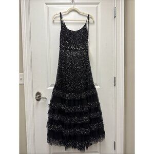 MAC DUGGAL Size 4 Black 10883 Embellished Scoop Neck Tiered Formal Gown Dress