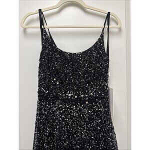 Our Embellished Scoop Neck Tiered Gown is a dazzling masterpiece crafted from sequin fabric. Fully lined and featuring delicate spaghetti straps, it's perfect for weddings, galas, or any special event where you want to sparkle and shine.