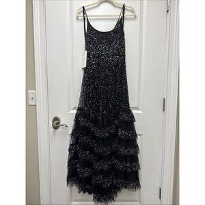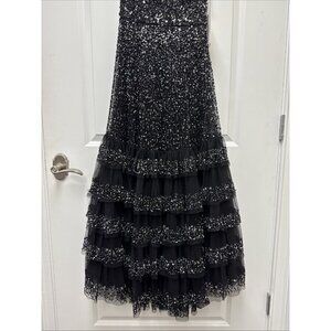 NWT Mac Duggal 10883 Embellished Scoop Neck Tiered Gown in Black