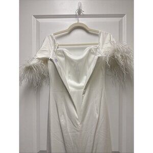 MAC DUGGAL Size 6 White 11441 Feather Off The Shoulder Gown Dress Wedding Bride