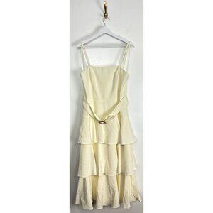 MAC DUGGAL Spaghetti Straps Tiered Tea-Length Dress in White Ivory Size US 12