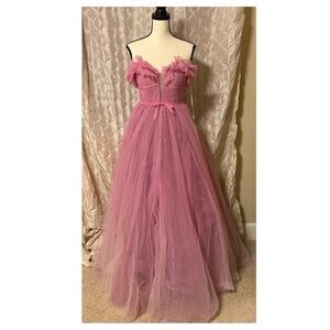 MAC DUGGAL Strapless Glitter Tulle Gown Sparkle Maxi Dress Pink Lilac Formal