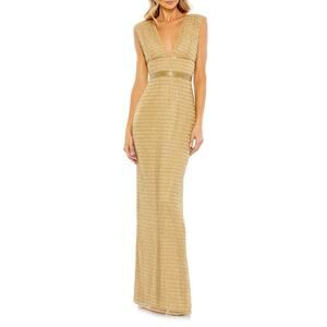 MAC DUGGAL Women's Beaded Cap Sleeve V Neck Column Gown In Gold Size 8 NWT