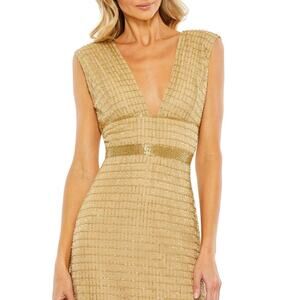 MAC DUGGAL Women's Beaded Cap Sleeve V Neck Column Gown In Gold Size 8 NWT.