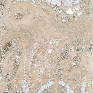 This stunning evening gown from MAC DUGGAL is perfect for any formal occasion. The intricate embellishments and illusion details on the long sleeves add a touch of elegance to the platinum gold color. It is made of high-quality polyester material, ensuring comfort and durability. The dress is a size 18, which is suitable for plus-sized women. The designer/brand is recognized for their exceptional craftsmanship and attention to detail, making this gown a statement piece for any event. Get ready to turn heads in this gorgeous piece.